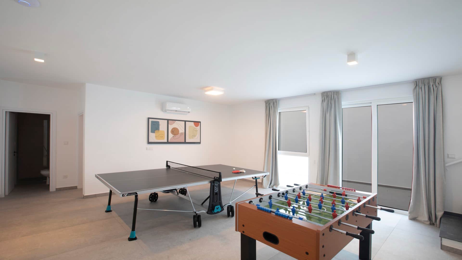 There is another bathroom on this floor with a shower and WC, and a communal area with a full sized football table and table tennis.