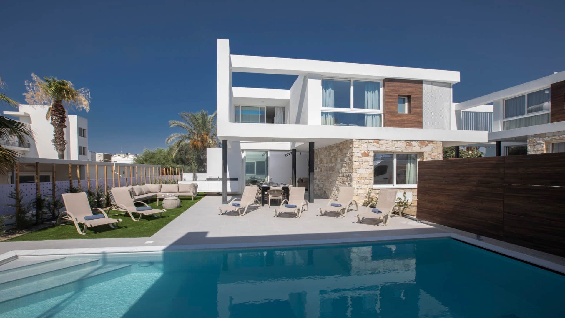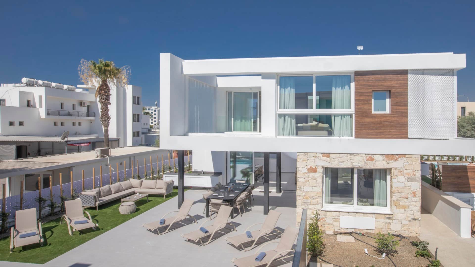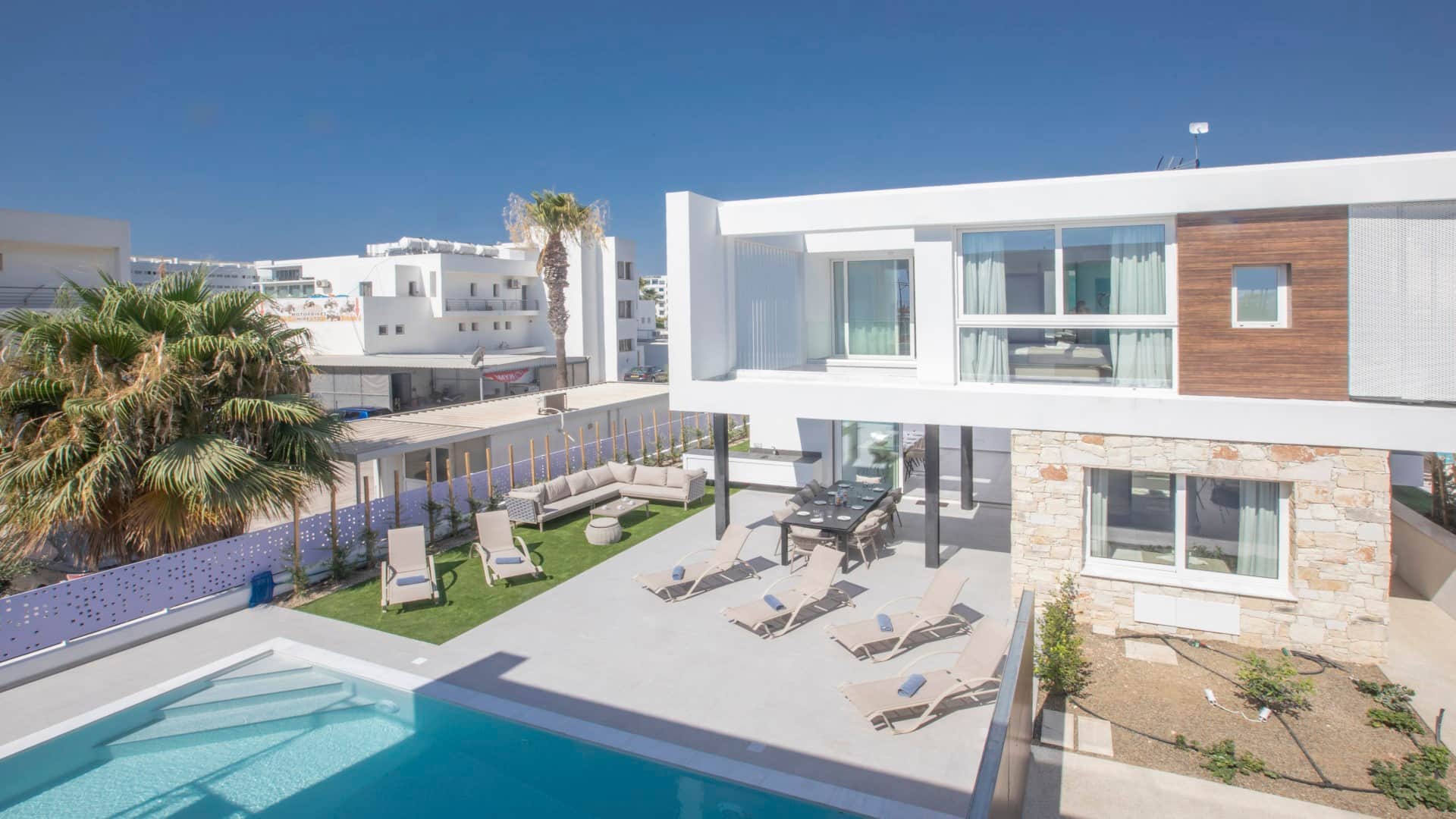 This luxury and brand new 5 bedroom villa is located in a prime, central Ayia Napa location, just a few minutes walk to Nissi Avenue and all its beaches and amenities. The villa is newly built and fully equipped with new and contemporary furniture and fittings to ensure a comfortable stay.