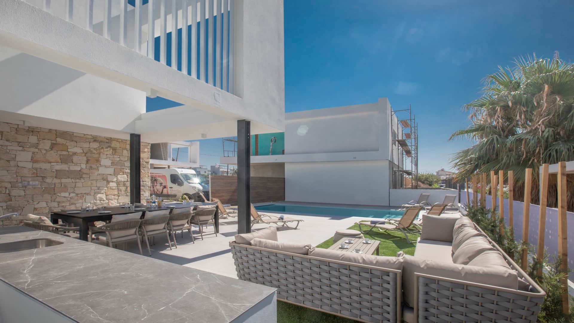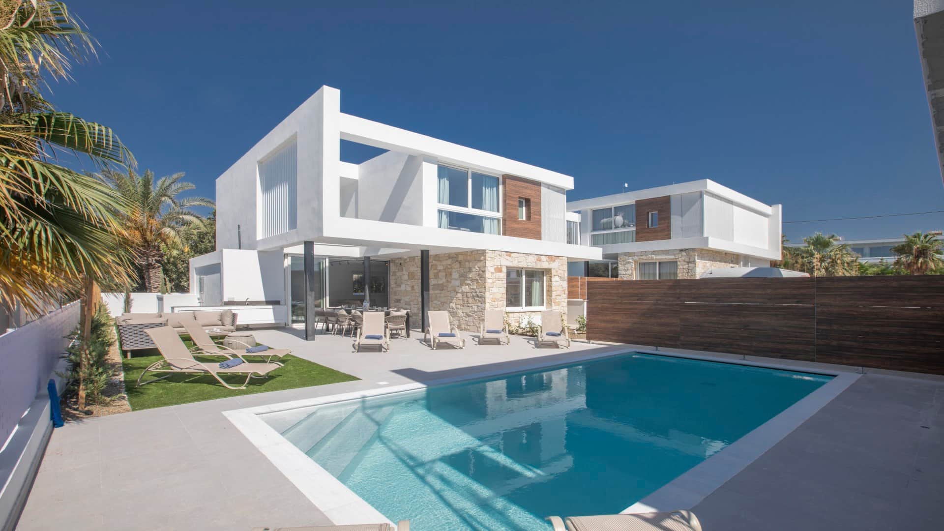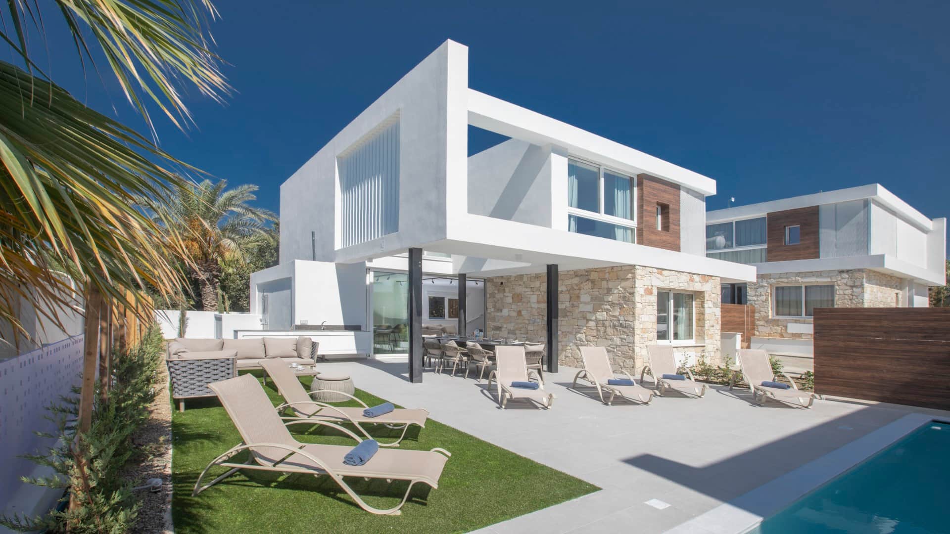 This luxury and brand new 5 bedroom villa is located in a prime, central Ayia Napa location, just a few minutes walk to Nissi Avenue and all its beaches and amenities. The villa is newly built and fully equipped with new and contemporary furniture and fittings to ensure a comfortable stay.